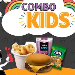 Esse é especial para os Mini Fãs de Menu! O combo é composto por: - 1 Smash Kids (Pão, Blend especial de carne bovina de 60g, 1 fatia de queijo Cheddar) - 6 Batatas Sorriso crocantes e sequinhas padrão Menu - 1 Suco Kapo (Uva ou Morango) - 1 Bala Fini Sortida